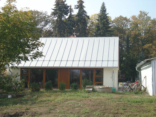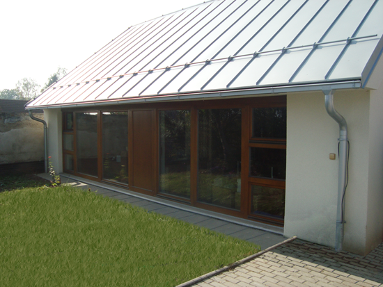 Okna kanceláří jsou orientovány do zahrady a výhled zpříjemňuje pracovní prostředí. Prosklené plochy jsou převážně orientovány na východ a zastíněny převysem střechy, takže nehrozí přehřívání vnitřních prostor.
